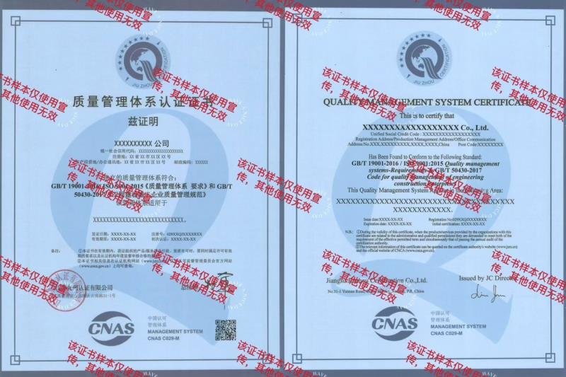 • 質(zhì)量管理體系50430證書樣本